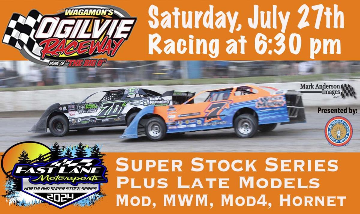 This Saturday, July 27th, the FastLane Super Stock Series tackles The Big O, plus Wissota Auto Racing LATE MODELS, Modifieds, Midwest Mods, Mod Fours, and Hornets will be in action, presented by IBEW Local 110.